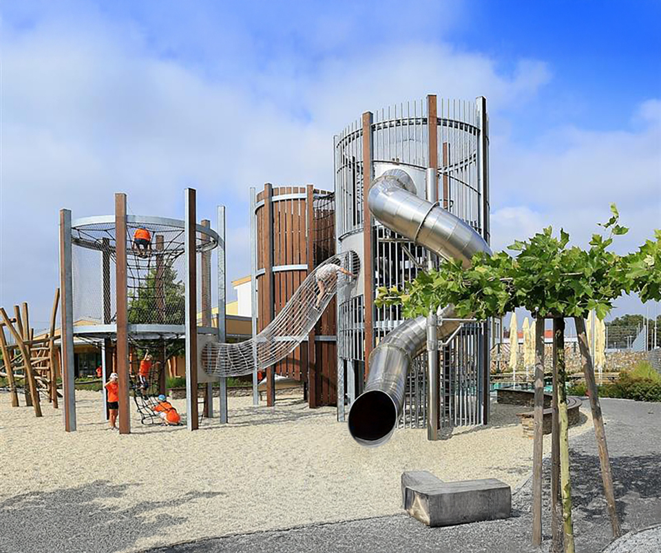Playgrounds are a place for everyone. They engage both healthy children and children with disabilities, including various forms of autism or vision and hearing impairments. They also consider adults and seniors, who make up half of the visitors to these children's worlds. Therefore, they combine playgrounds with quality urban furniture, benches, seating elements, or trash cans from our mmcité workshop.