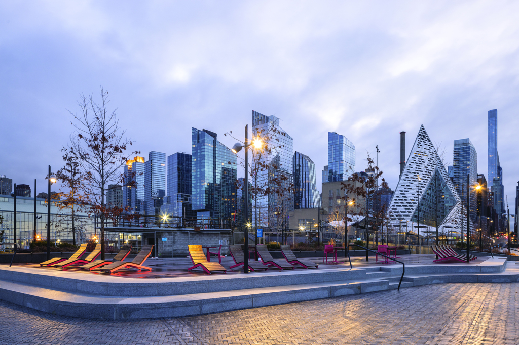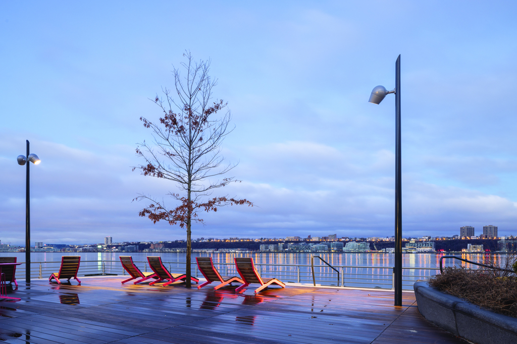 The park offers a range of amenities, including a 120-foot-long synthetic turf athletic field, a 26-foot-high rope climbing structure, a ship’s hull, a sloping sun lawn, and a sunset deck with sweeping views of the Hudson River. Prominently featured on the sunset deck are the Rivage loungers, alongside Blocq benches and ADA-compliant Blocq picnic sets, strategically placed throughout the park. These carefully selected site furnishings, along with the park’s thoughtful design, embody the Trust's commitment to crafting accessible, engaging public spaces that enrich the urban landscape.