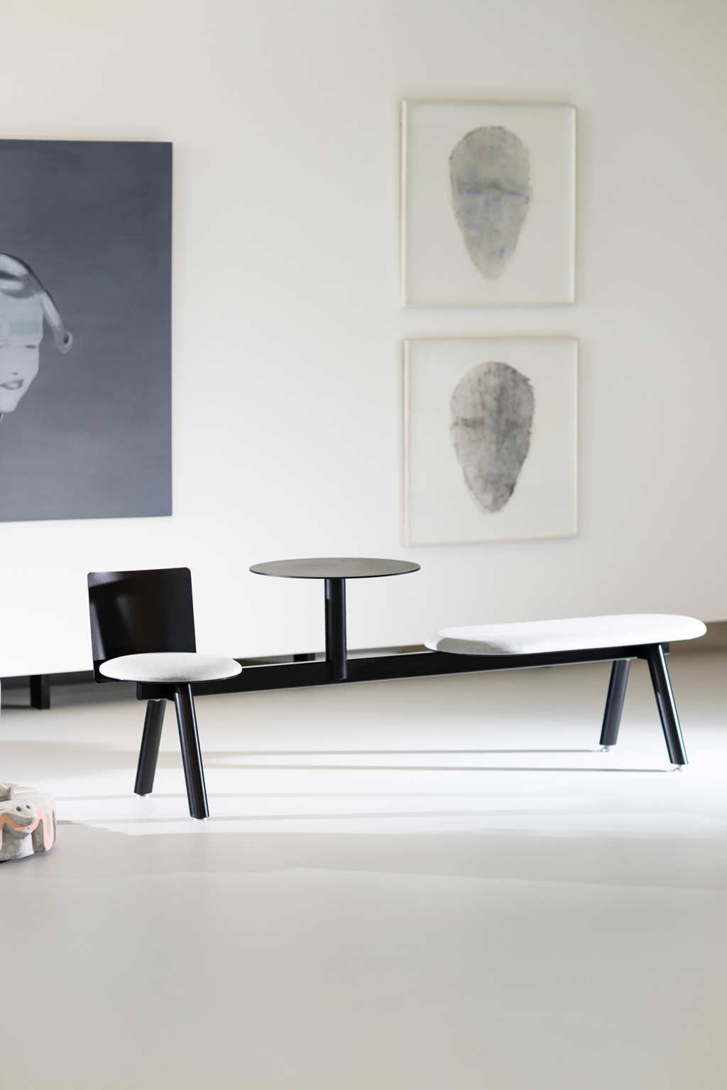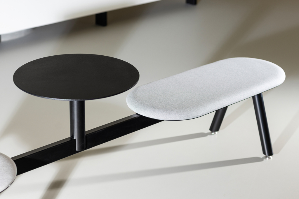 El código Morse trasladado al espacio público. Una señal larga con breves paradas en forma de asientos de madera comunica de una manera excelente en el interior de las terminales de aeropuertos, estaciones de tren, así como en parques o paseos marítimos. El sistema modular sigue el ritmo de su entorno, convirtiéndose en una fuente de inspiración para el diseño de la colección Morse. Se compone de formas y longitudes diversas que resaltan el entorno en el que se encuentra. La colección está disponible en varios materiales y cuenta con una amplia gama de accesorios, como una mesa incorporada, luces, respaldos, reposabrazos o carga USB.
