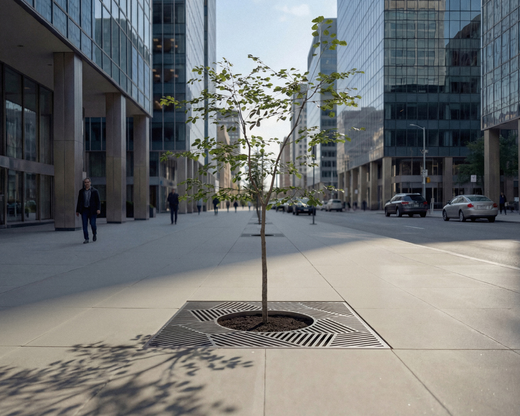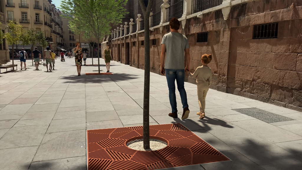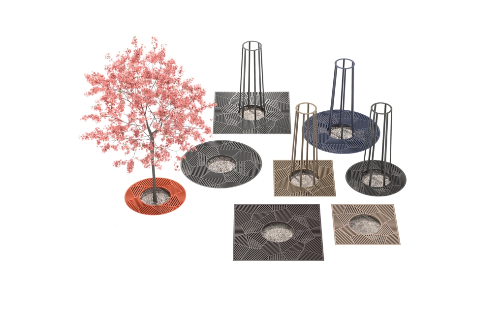Este elemento tradicional del mobiliario urbano – la rejilla transitable que protege las zonas verdes – presenta una estructura geométrica decorativa, casi ornamental. Su composición más libre se integra dentro de una retícula regular. Los modelos más grandes están formados por cuatro partes idénticas; los más pequeños, por dos mitades. Estas configuraciones protegen eficazmente el sistema radicular de los árboles en entornos urbanos. Las piezas de fundición están disponibles en formatos cuadrados y circulares. Envejecen de forma natural sin necesidad de tratamiento adicional, o bien se pueden acabar con pintura termoendurecida. Las rejillas son seguras para todos: ciclistas, peatones y cochecitos. Toppa encaja tanto en plazas históricas como en barrios de arquitectura contemporánea.