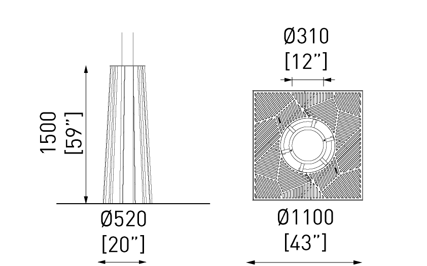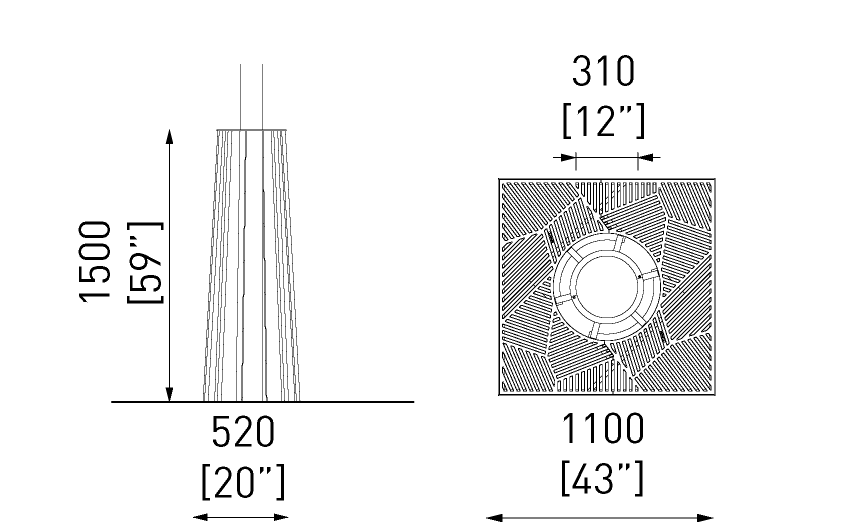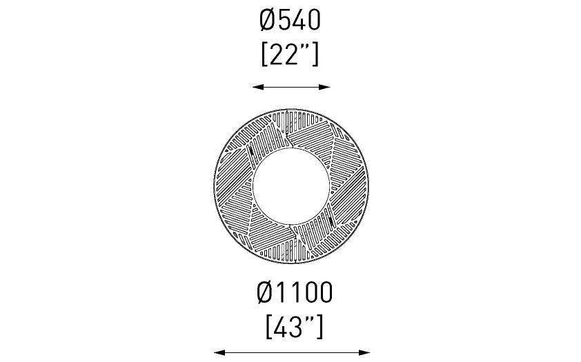 Fundición de hierro gris que envejece de forma natural con un acabado similar al acero corten. También disponible con pintura termoendurecida. El marco de instalación está incluido en el producto.