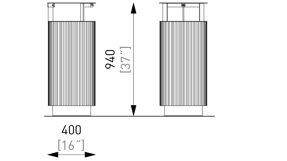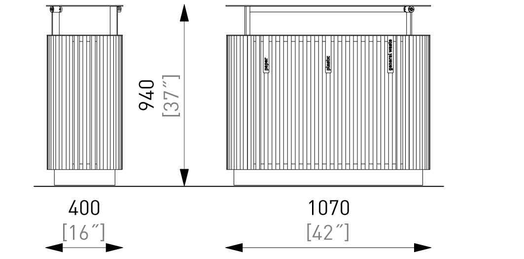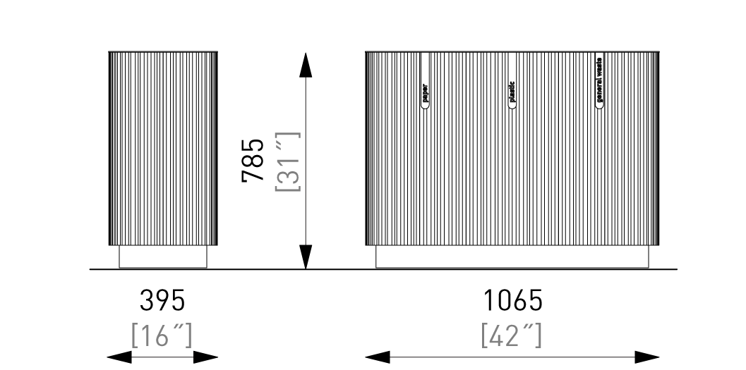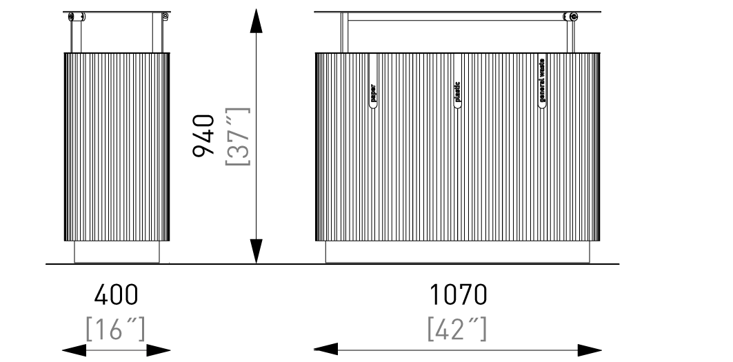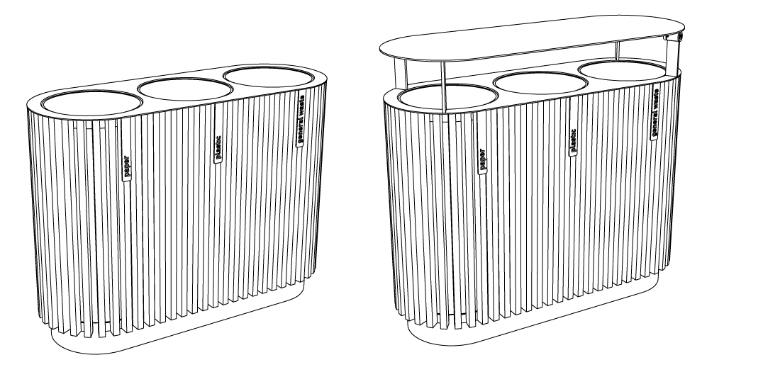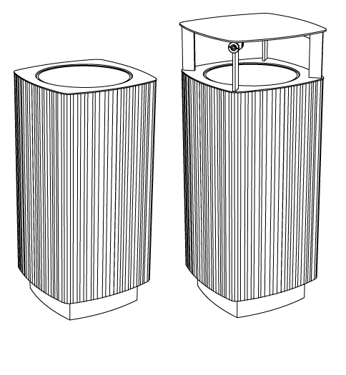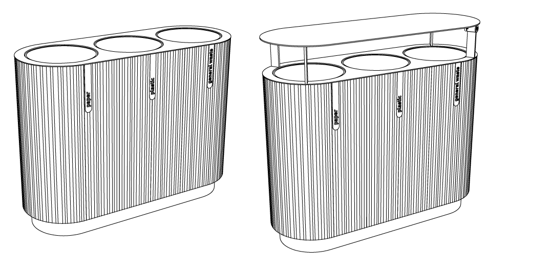 Quinbin to seria trwałych koszy na śmieci, które zmieniają swoje oblicze dzięki różnym wariantom wykończenia obudowy zewnętrznej. Dostępne w dwóch formach: pierwsza to czysty, wąski, cylindryczny kształt, druga to bardziej wyrafinowana konstrukcja bazująca na zaokrąglonej, kwadratowej podstawie. Solidne kosze, dostępne w wersji z perforowanej blachy stalowej, w przeciwstawnej estetyce z drewnianymi szczeblinami lub w obudowie z aluminium z subtelnymi, nieregularnymi rowkami, oferują pełne spektrum możliwości dla każdego rodzaju przestrzeni publicznej. Lekki, ale wtrzymały plastikowy pojemnik wewnętrzny ułatwia przenoszenie i opróżnianie kosza. Wszystkie warianty mogą być wyposażone w daszek, dostępne są również wersje potrójne do segregacji odpadów.