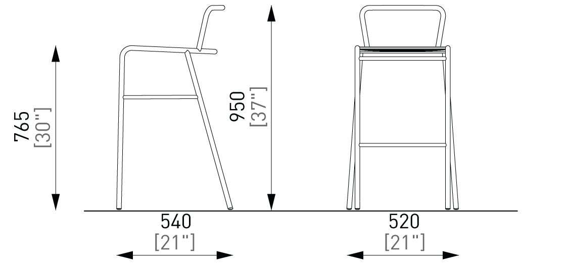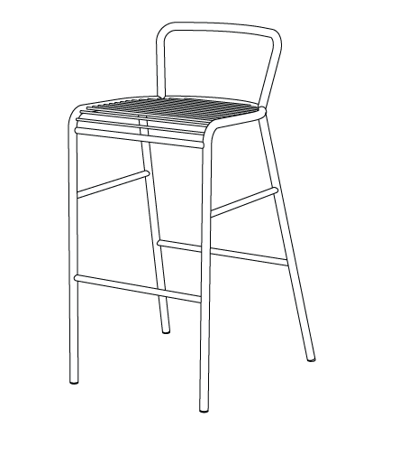 Construcția ușoară din oțel zincat este finisată cu un strat de vopsea pulbere, cu opțiunea de lamele de lemn sau țevi de oțel. Scaune care se pot stivui cu și fără spătar, scaune de bar și două tipuri de mese.