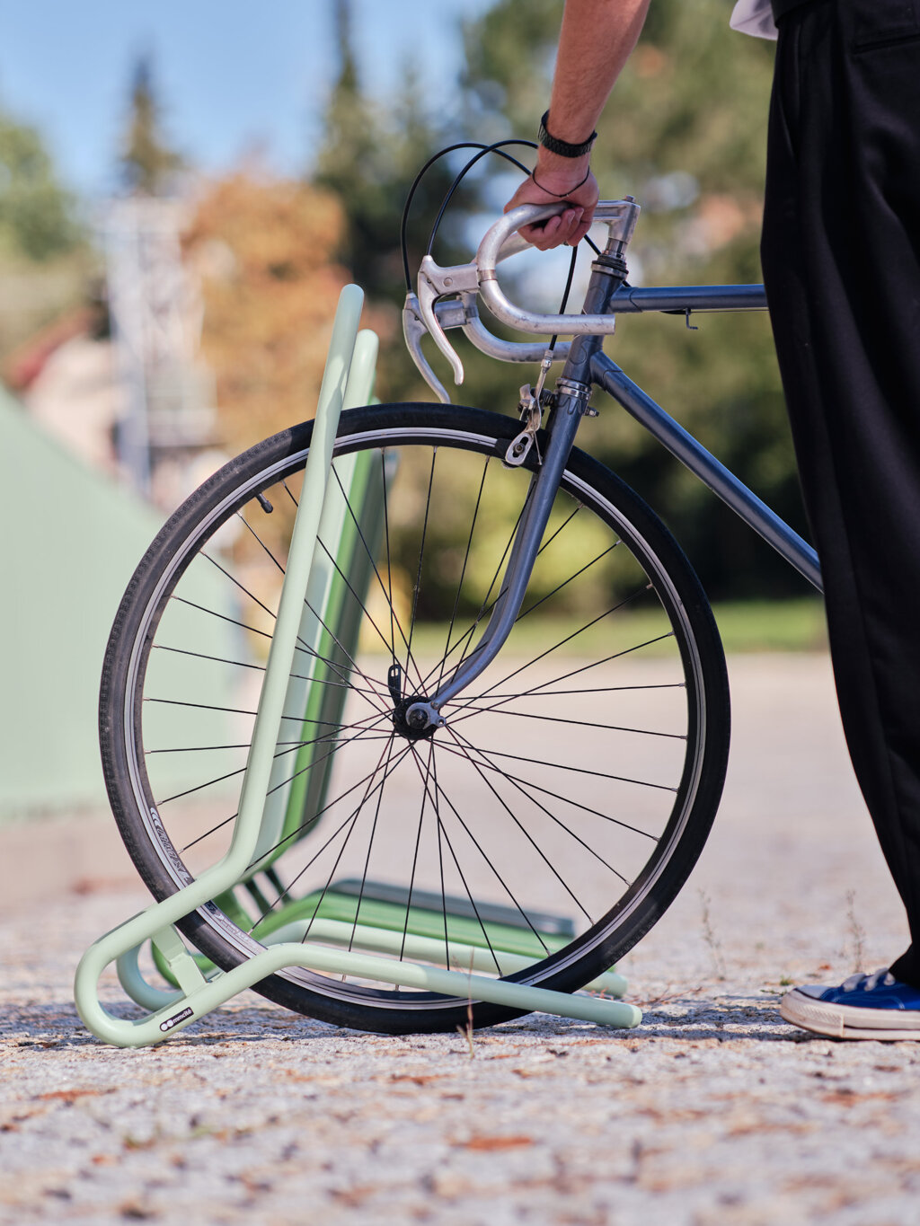 Suportul de bicicletă Ocus, independent, se integrează natural în mediul înconjurător, asemenea mișcării cicliștilor care l-au inspirat. Acest suport minimalist, realizat dintr-un tub îndoit neîntrerupt, are forme rotunjite fără margini ascuțite, oferind atât estetică cât și siguranță. Modul de introducere a bicicletei asigură un sprijin sigur pentru toate vehiculele cu două roți din oraș.