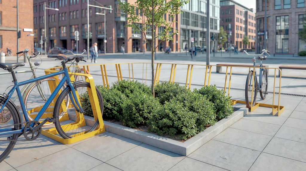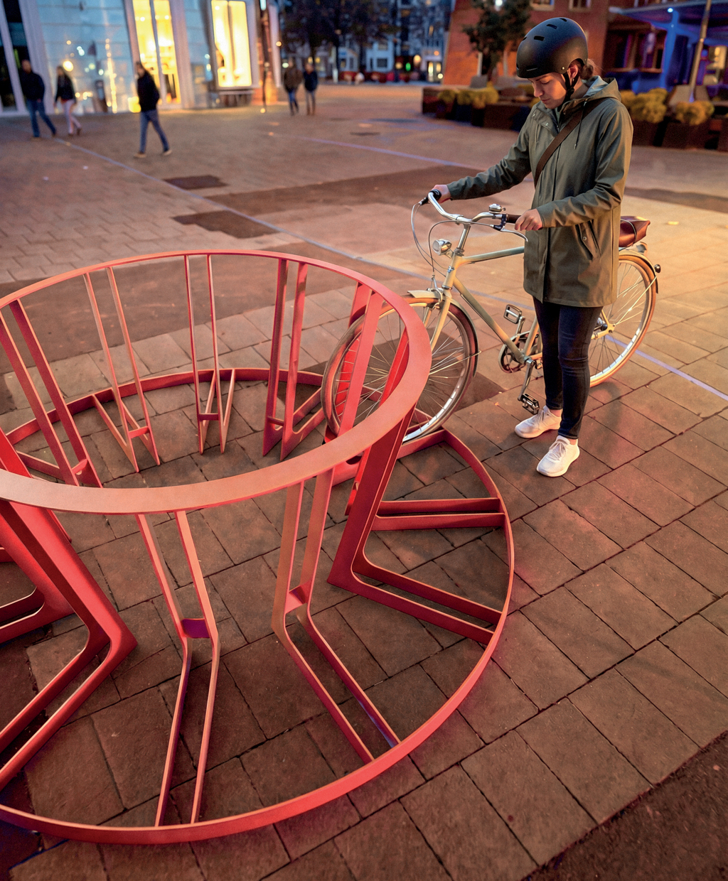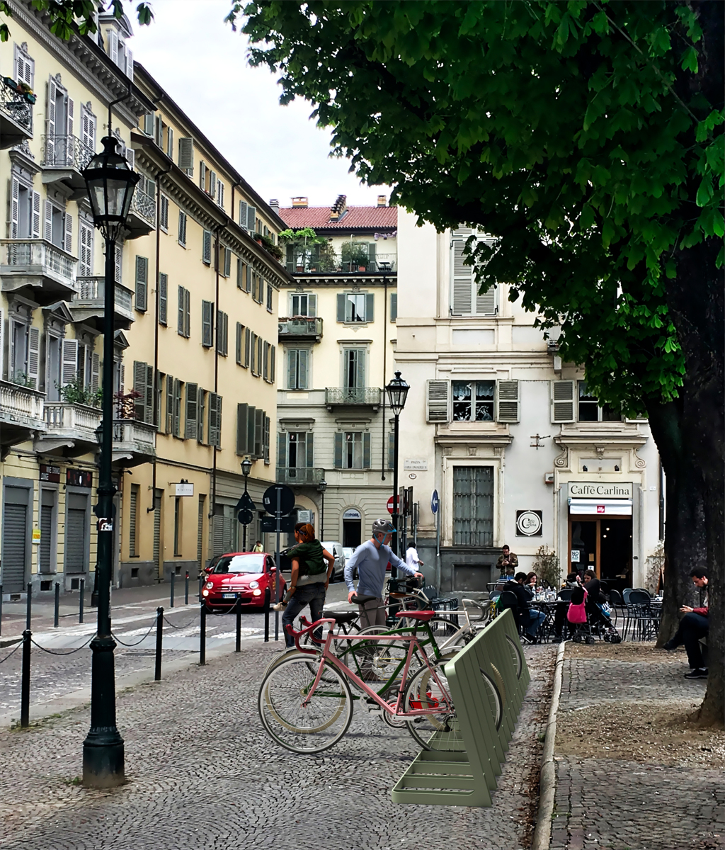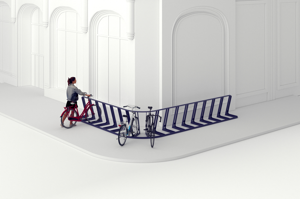 Suportul pentru biciclete Rider poate funcționa atât ca element individual, cât și ca sistem modular, creând rânduri atractive din punct de vedere vizual și practic nelimitate pentru un număr mai mare de biciclete. Astfel, suportul devine nu doar o soluție practică, ci și un element sculptural interesant în spațiul public. Construcția minimalistă, realizată dintr-un singur profil continuu, oferă o modalitate clară și intuitivă de parcare. Bicicleta este fixată în siguranță prin sprijinirea anvelopei, fără contact cu cadrul, spițele sau frânele pe disc. Siguranța și confortul utilizatorului sunt susținute de absența muchiilor ascuțite și de utilizarea razelor line. Parcarea este rapidă, confortabilă și delicată cu bicicleta.